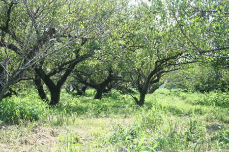 お盆休みに入る前、時間切れとなった梅園の草刈り、、。15日からずーーっと、毎日悪戦苦闘です。 13日は疲れがどっときて、昼前まで何もかも忘れてぐっすり眠りました。 それから食事して、仏壇のお掃除にかかりましたが、すむや否や又、どうしようもなく眠くて『マッサージ器』の上でそのまま夕方まで眠ってしまい、屋敷の中にある野仏さまに「すみません。ごめんなさい」と、謝りながら、孫と一生懸命お掃除してお供えを済ませたときは、夕闇のなかでした。 お盆があけて、男性組は、16・17・18日とひたすら草刈で、若い二人は19日、友人の結婚式で中休み。 俊一郎は一人で、お弁当と梅ドリンクの氷水を持って、もくもくと草刈り、、。 女性組は、お盆の間に重なったご注文のお客様へ出荷でしたが、長雨のせいか『カメムシ』が異常発生していて、ナスやピーマンは全滅に近く、お荷物の間のパッキン代わりの野菜あつめに、四苦八苦。 「無農薬で生産すると言う事は、こうゆう事ですからね」と、納得させながら、励ましながらの毎日です。